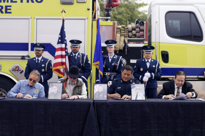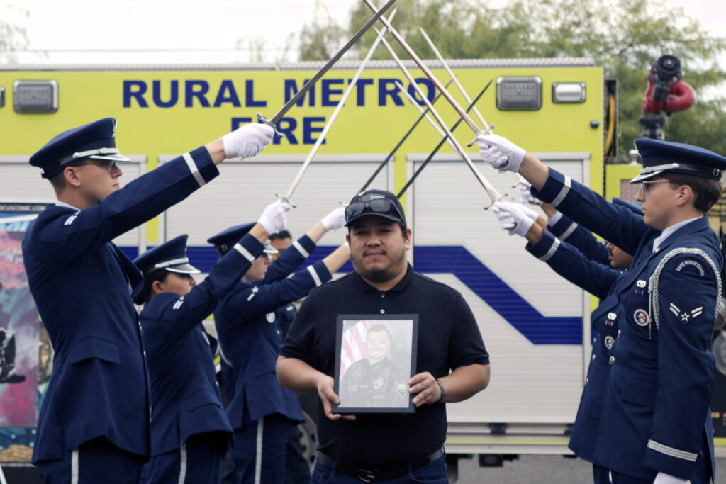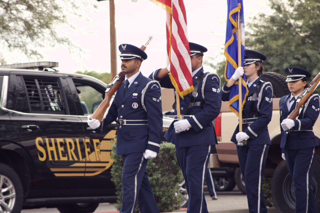 The United States Air Force performed a presentation of colors and a saber arch ceremony. USAF Airmen Gabe Howell sang the National Anthem. Awards and commendations were also presented to award recipients and dignitaries from the Glendale Fire Department, Sun City Fire Department , Apache Junction Police Department, Luke Air Force Base as well as city of Goodyear Mayor Joe Pizzillo, who received a public service award.