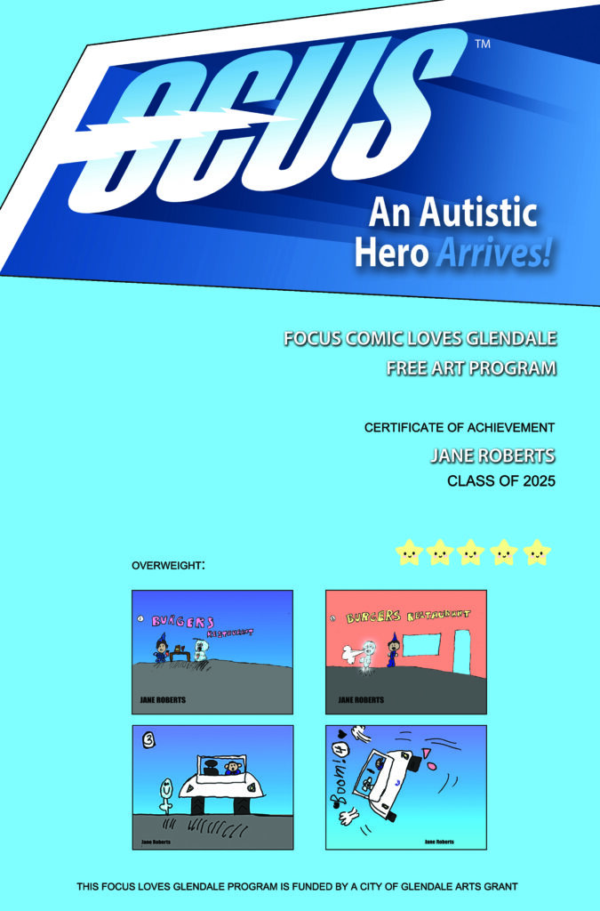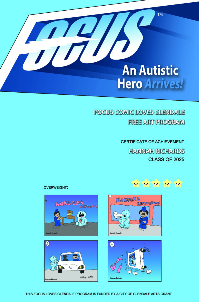 Program Description: Immerse yourself into the world of comics and super heroes. Learn how to create comic strips with Yvonne Wan, Focus comic creator and her team of industry professionals. Learn how to translate a script into a comic strip, master the art of pencilling and comic inking. Learn how to present your art to others. Receive a Certificate of achievement featuring the students art work colored professionally by Yvonne Wan and her Autistic Intern Carson Shuler at graduation. Have your Focus Comic 2025 Class photo taken with the US Air Force Honor guard and local heroes at graduation. Receive gifts at graduation to celebrate our students accomplishments (gifts include comics, quality art supplies, and gifts from different agencies including the US Air force).