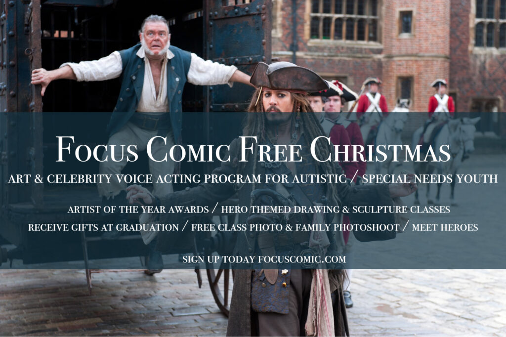 Students will get the opportunity to honor our heroes through art online and in person. Student will also get the opportunity to meet celebrities and industry professionals through this program. Students may chose to participate in one class or more. Students will learn comic book pencilling and inking techniques. Students will also get the option to learn how to create sculpey sculptures (great for developing students fine motor skills and improve tactile defensiveness and meet their sensory needs). Confirmed celebrity for this program include Kevin McNally known for Pirates of the Caribbean , Dr Who and Down town Abbey. Confirmed industry professional include Yvonne Wan, Creator of Focus comics featuring one of the worlds first autistic super heroes.