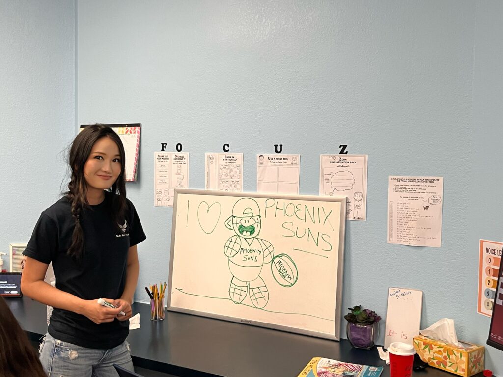 This week, Yvonne Wan, Focus comic creator and award winning artist, taught our students how to draw Focus the autistic super hero playing for the Phoenix Suns. Our autistic and special needs students enjoyed learning about basketball, and comic art! They also worked on their presentation skills. Check out their art and presentations!